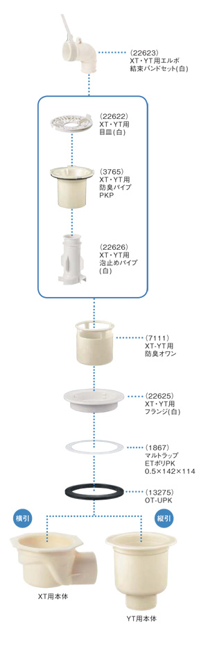 トラップ内の各パーツは取り外しできますので、お掃除簡単。