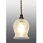 ガラスシェードは、吹きガラス工法または型押しガラス工法で作成されています。ガラスシェード内に気泡が残ることがあったり、形の若干のゆがみや、中心線のずれなどが起きることがあります。また、エッチング技法を使ったガラスシェードは手作業のため、模様にわずかな曲がり等が起きることがあります。