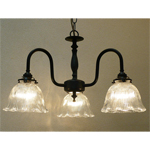 ガラスシェードは、吹きガラス工法または型押しガラス工法で作成されています。ガラスシェード内に気泡が残ることがあったり、形の若干のゆがみや、中心線のずれなどが起きることがあります。また、エッチング技法を使ったガラスシェードは手作業のため、模様にわずかな曲がり等が起きることがあります。