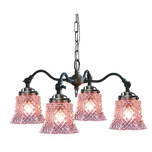 ガラスシェードは、吹きガラス工法または型押しガラス工法で作成されています。ガラスシェード内に気泡が残ることがあったり、形の若干のゆがみや、中心線のずれなどが起きることがあります。また、エッチング技法を使ったガラスシェードは手作業のため、模様にわずかな曲がり等が起きることがあります。