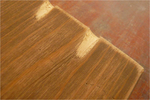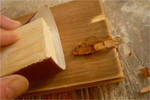 ペーパーを当て木に巻いて、全体をペーパーすると、平らに仕上がります。(加工時推奨ペーパー、150から180番)