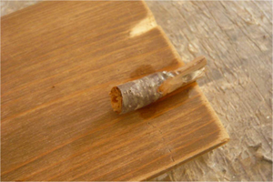 接着剤を付ける側の小枝の皮は取るようにしてください。