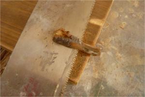 接着剤が乾いたら、鋸、又は鉄鋸で余分なところを大まかにカットしてください。