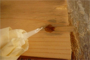 死に節が抜け落ちて、穴の開いている状態を補修する方法です。