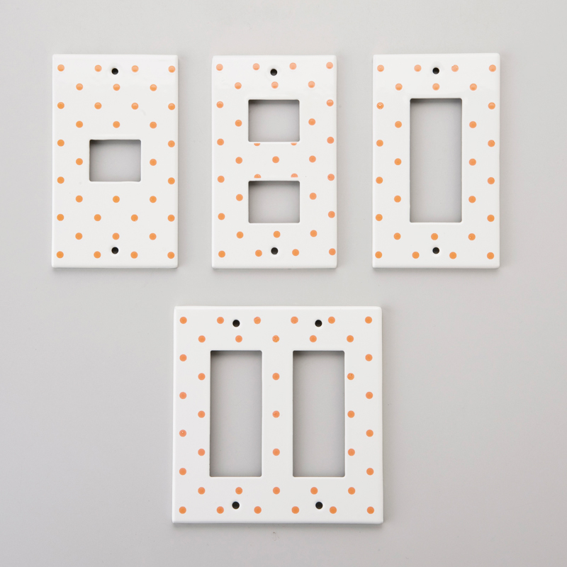 水まわりアクセサリー スイッチ&コンセントカバー Uemura Original ドット柄オレンジ 3枚組 (鉄製・ホーロー塗装)