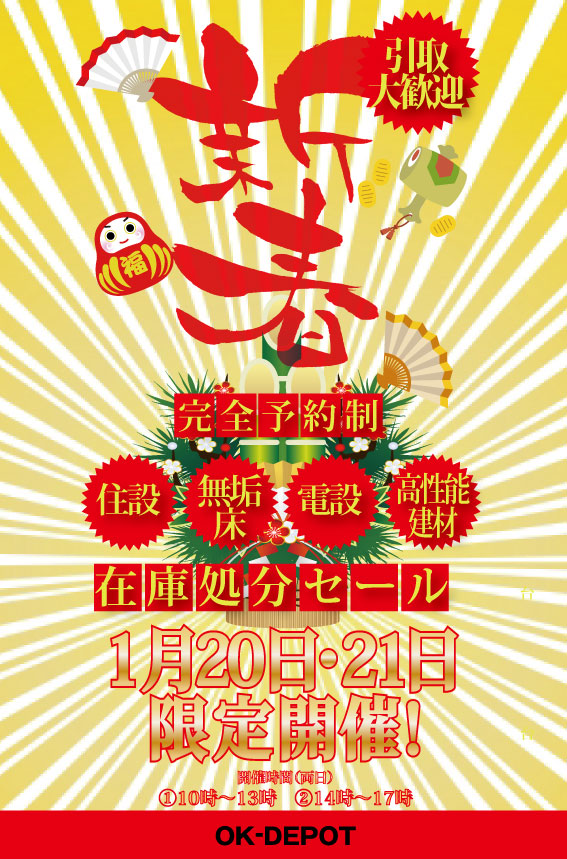 - 2017/1/20・21 業者様限定!新春在庫一斉処分セール開催!!