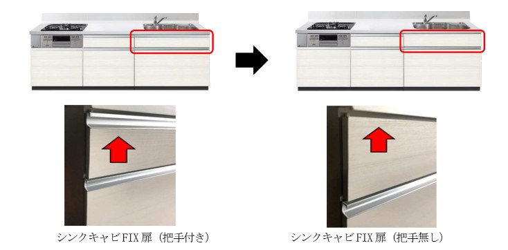 - 激安システムキッチンエラーレ FIX扉の把手について