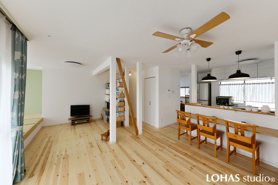 - 【施工事例】相性抜群 無垢床材と無垢の木のキッチン