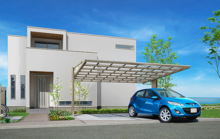 - 車の出し入れスムーズ!前方180°オープンのカーポート