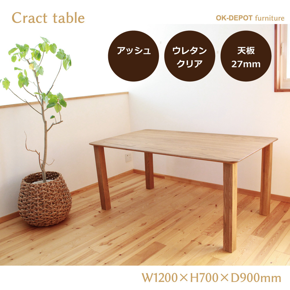 - LOHAS material 無垢セミオーダーテーブル Cract table(クラクトテーブル) W1200×H700×D900 天板27mm LOHAS OIL塗装 アッシュ/オーク