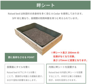 - 【お知らせ】A-Cedar Raised bed 畔シートサイズ変更