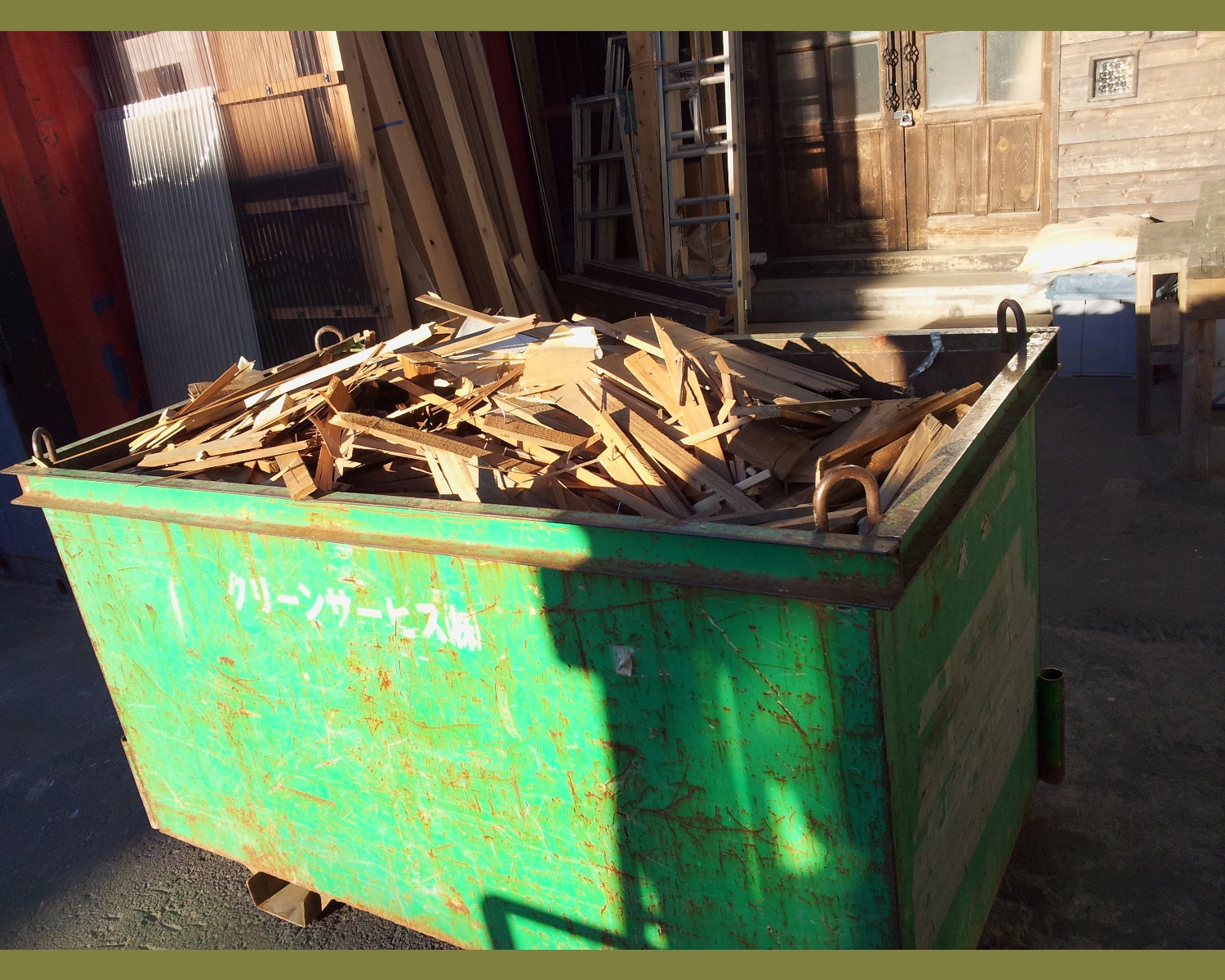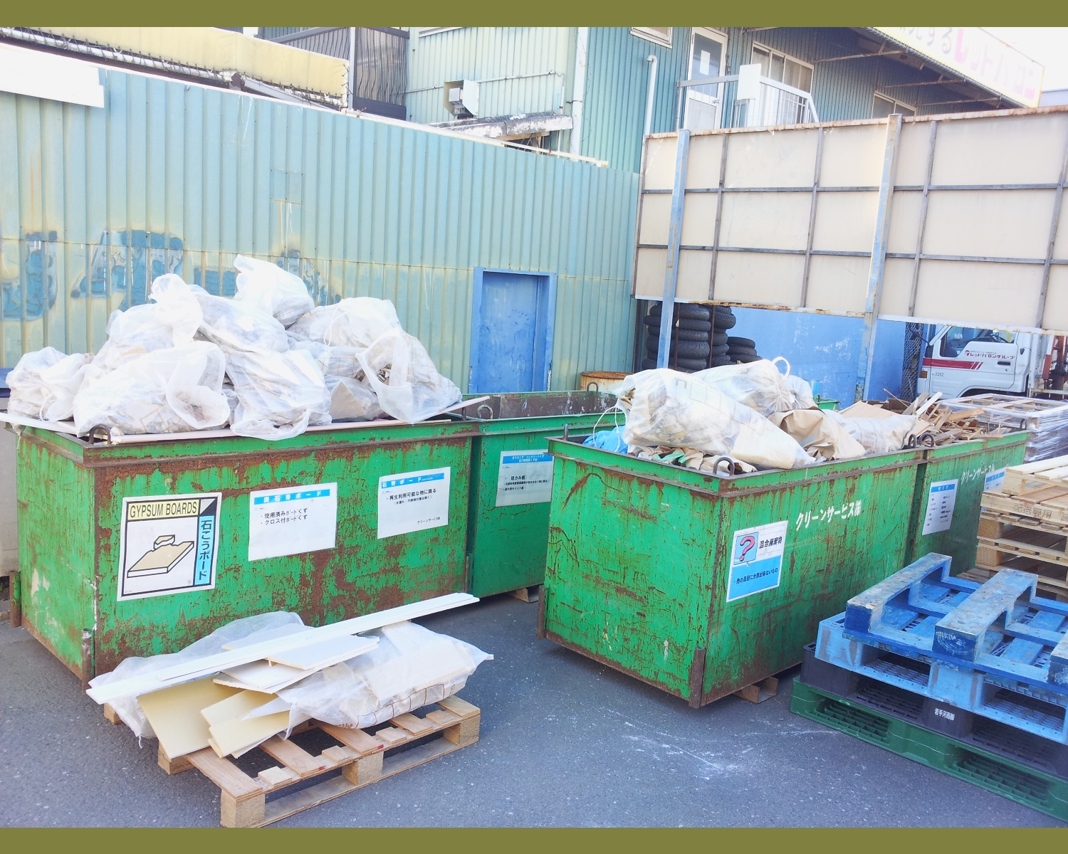 施工部門、耐震部門、建材部門からの産廃物が集まると、ゴミ量が多くてほぼ毎週6つのゴミコンテナを入れ替えています。