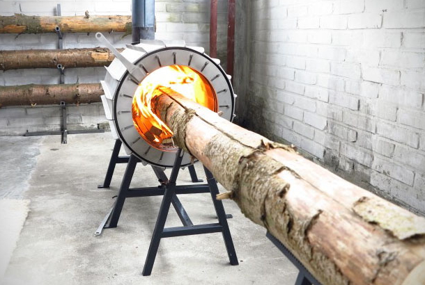 木材をスタンドの上に設置をして、燃えた分を少しずつ押して燃やすそうです。