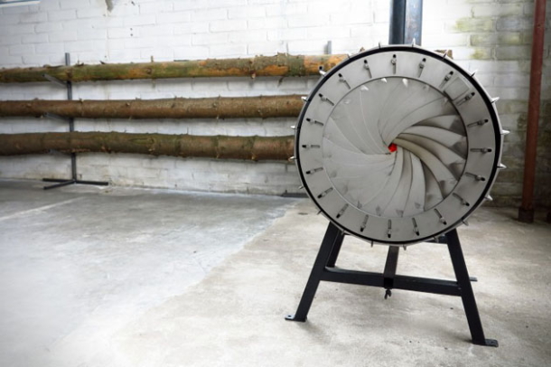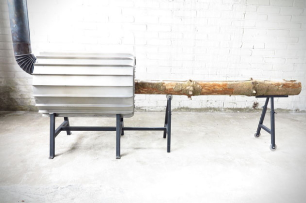 斧で割った木材(薪)をストーブに入れるのが一般的なストーブですが、このストーブは木材丸々1本を入れて燃やしてしまう「Spruce Stove」という名前のストーブだそうです