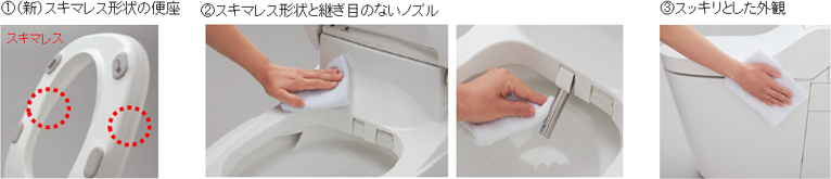 万一汚れてもふき取りやすい「スキマレス形状」を随所に採用しました。