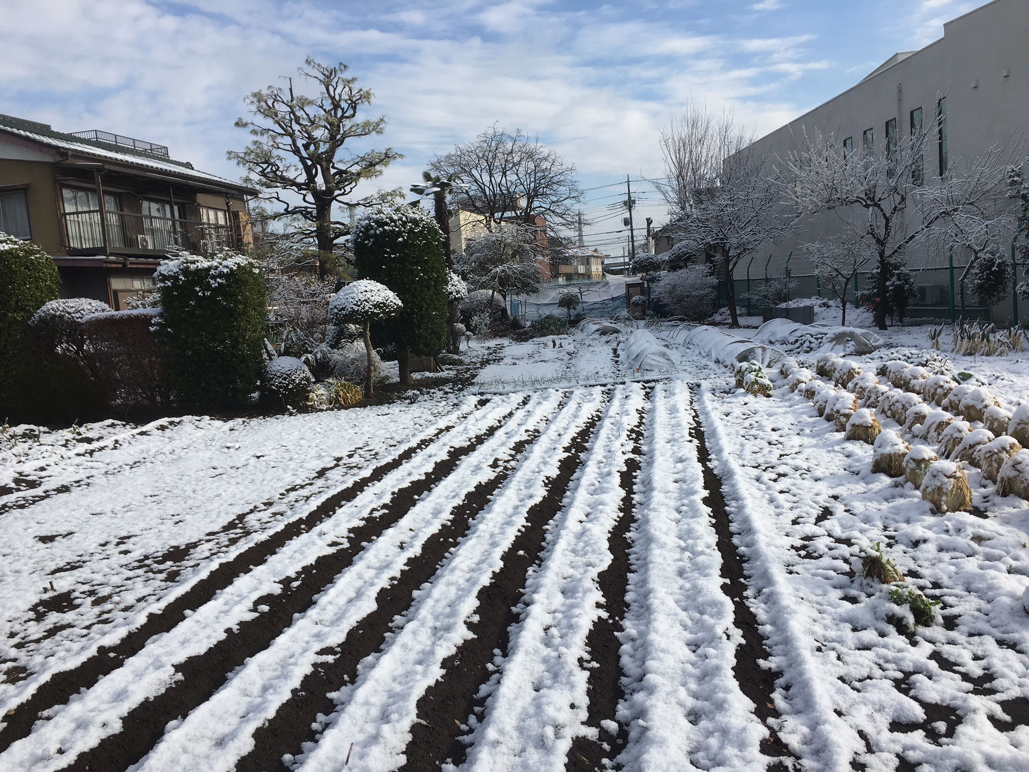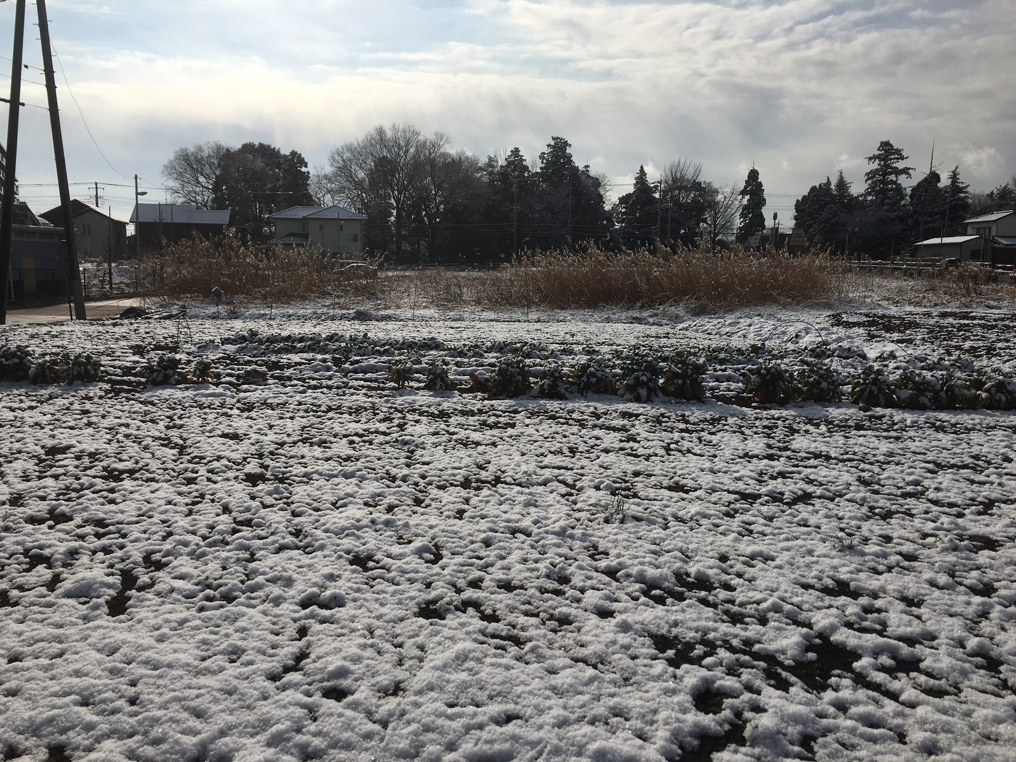 昨夜の雪で、朝が寒いところです。 七里駅から物流センターまで10分強の歩き、 雪染めの田圃景色が目に入りました。