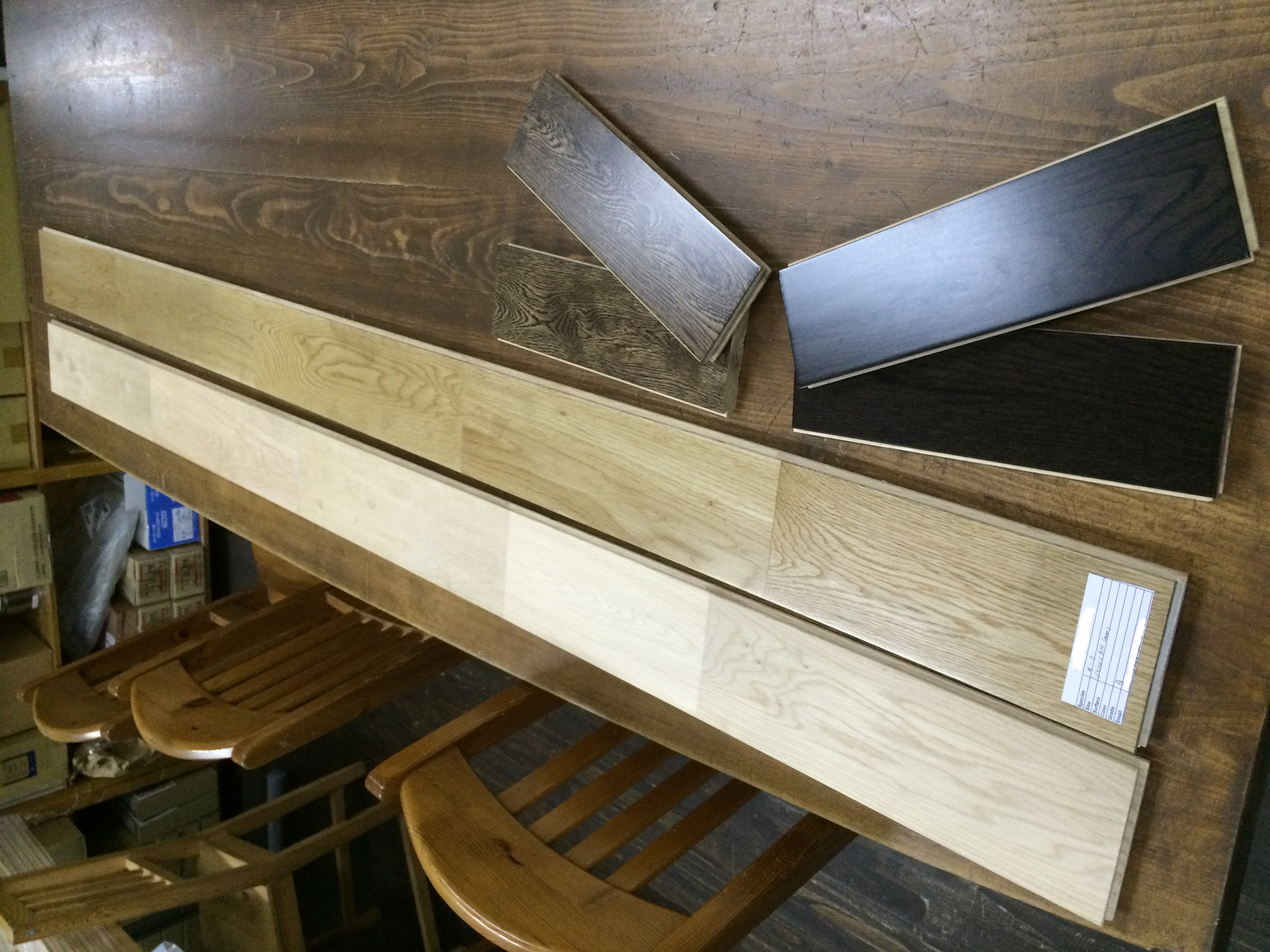 海外からオーク(Oak)、カバ(Birch)の床材サンプルを取り寄せてきました。