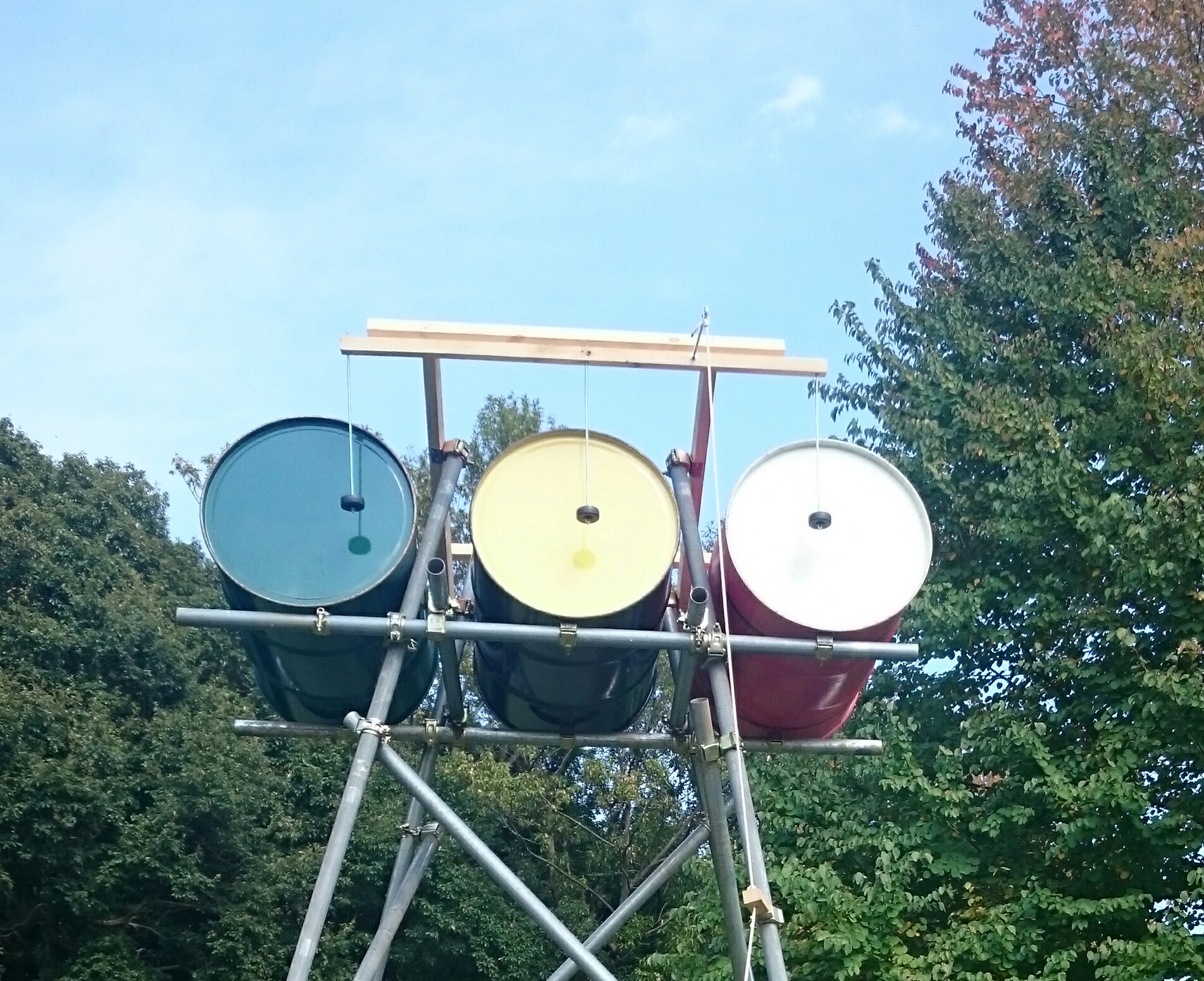 ドラム缶で作られた太鼓♪下に伸びているロープを引っ張ると、ドドンと音がなります^^