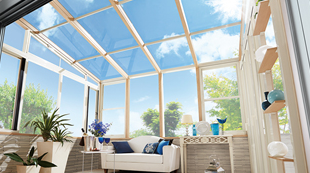 お部屋から見た側をシースルーにする事で、解放感のあるガーデンルームの出来上がり♪