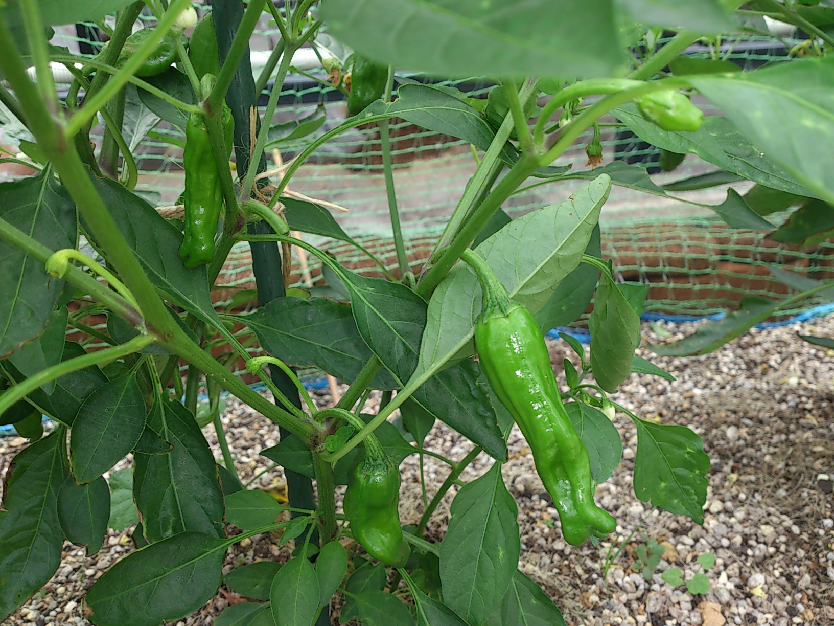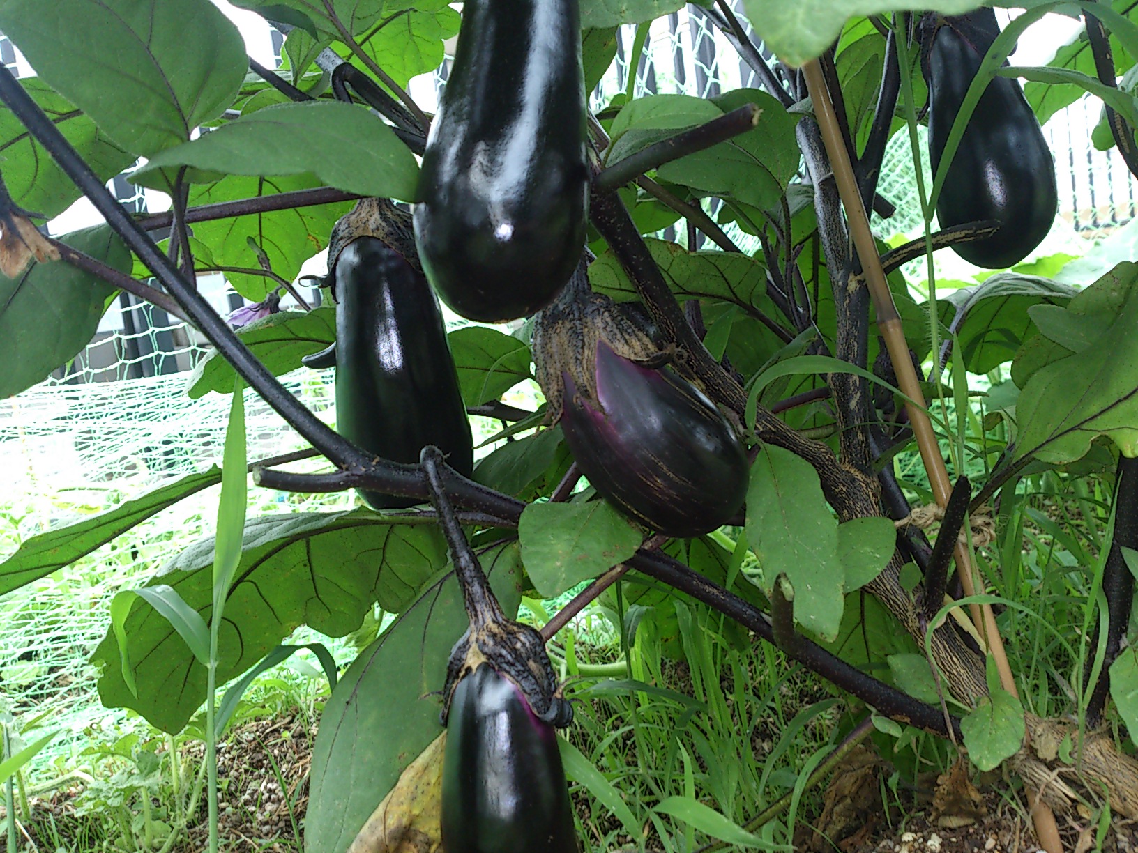 このうち、夏野菜のナスとシシトウが鈴なりになりまして、