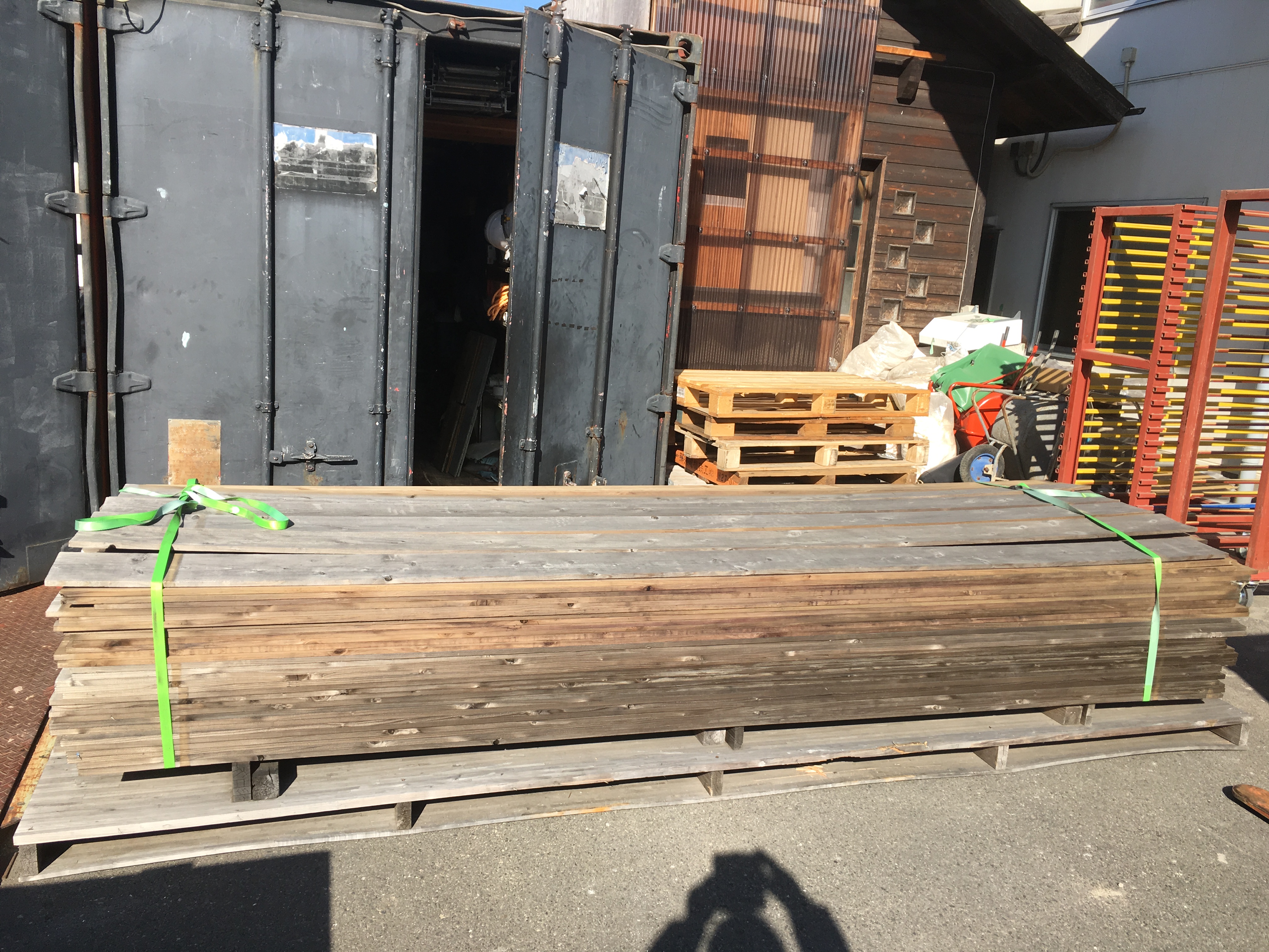 長い期間で倉庫外置き、天干し雨曝しで板の多少反り変形がありました。