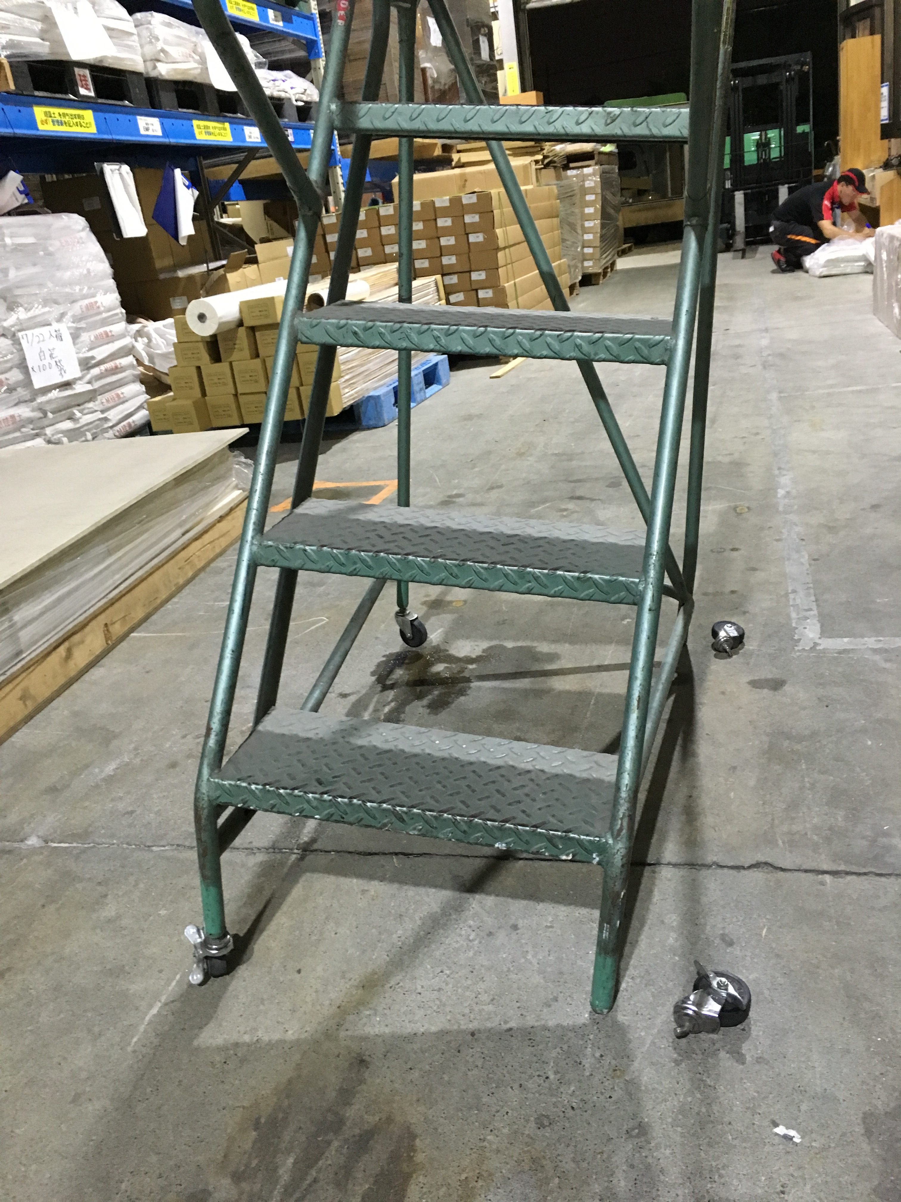 物流センター移動式鉄製作業台 (四輪キャスター付タイプ)のキャスターが壊れたため、