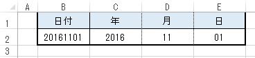 「B2」に入力された文字列の先頭(左)から「4」文字なので「2016」が抽出されます。