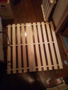 ・折れ戸にする為に、すのこを半分ぐらいの位置で横板をカット。