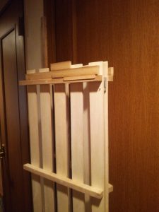 ・折れ戸が開いた時に固定する為に、上部に端材で、かんぬき状のものを作成。