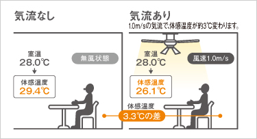 私の家にもシーリングファンがありますが、やはりあるのと無いのとでは、体感温度が異なります。
