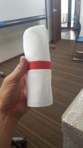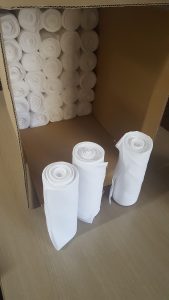晒しを3m程にカットして巾半分に折り丸めて置きます。