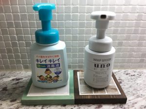 洗面所でボトルの台座に使っています。