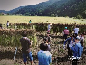 「こめまめプロジェクト」を推進していまして、毎年新入社員が稲刈りになります。