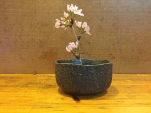 何に目覚めたのか、落ちていた枝を持ち帰り、1輪挿しを作ってみました^^