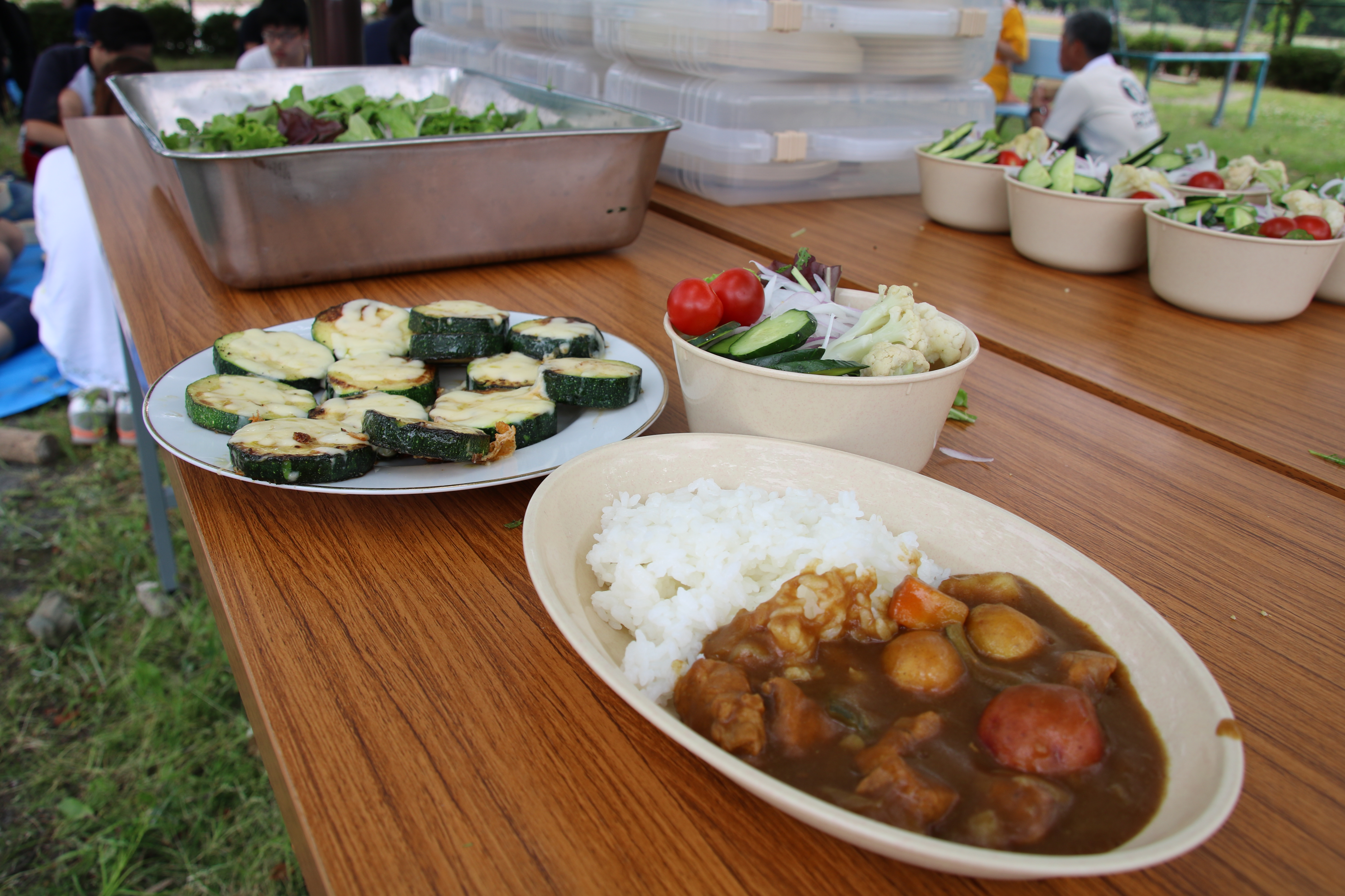 お昼ご飯は農家の方々が育てて下さった野菜たっぷりのカレーやサラダを頂きました。