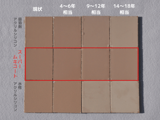 スーパームキコートは、シリコン塗料でありながら、フッ素塗料に勝る耐候性を実現しています!