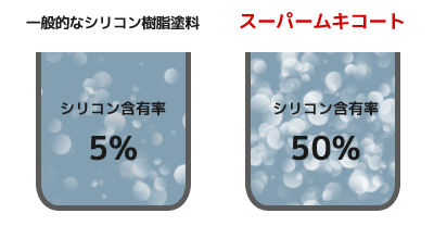 ムキコートは一般的なシリコン樹種塗料に比べ、シリコンの含有率が50%以上