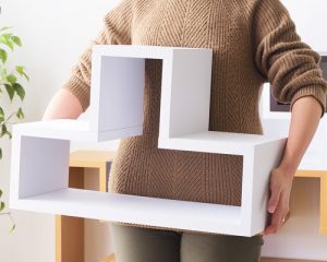 お部屋の模様替えに合わせて場所を移動したり形を変えたり、気軽に取り扱えるのは、このパズルラックの特徴の一つです。