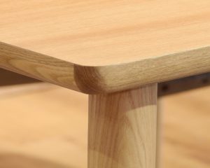 テーブルのフチの部分は天然木(アッシュ)を使用し、丸みのある柔らかい曲線が、カラメリチェアの丸みのある優しいフォルムと相性抜群。
