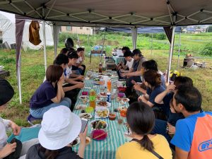 そして、私たちOK-DEPOT以外の参加者の方も大勢いらっしゃいました。小川町で育ってきて離れたけど、やっぱり小川町のために力になりたい人、小川町の有機野菜に興味があり、どんなところだろう?どんな味がするんだろう?と興味を持ってきてみた人、などなど、様々な方が参加され、小川町の魅力について考え、話ながらBBQを楽しみました!