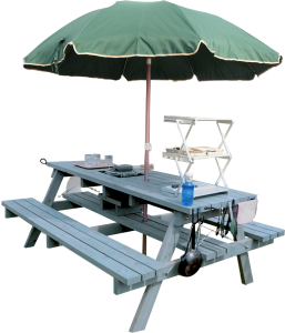 BBQコンロ設置用の加工や、暑い日差しから守るためのパラソル穴加工など、BBQや屋外での使用にピッタリのオプションも充実しています!また、テーブル下に荷物や小物を置ける棚も追加できます。これは他のピクニックテーブルにはない仕様だと思います…!なかなか便利です。OK-DEPOTオリジナルロートアイアンを使って、其々のBBQスタイルに合ったカスタムも出来ます!