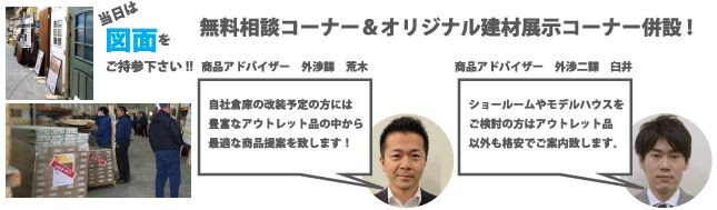 商品アドバイザーが、OK-DEPOTオリジナル建材や在庫処分セール品から、適切な商品をご案内致します。