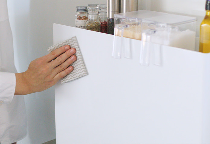 毎回の調理で使う調味料は、サッと取り出せるよう、コンロ周りに置いて使いたいのですが、油跳ねで汚れてしまうのが気になってしまいます。