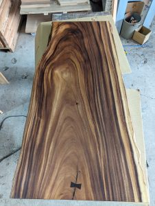 最近結婚した知人がいまして、結婚祝いを何にしようかと考えていたのですが、ちょうど手持ちの木材の中に、少し小さめな一枚板があり、それをプレゼントすることにしました。久しぶりに派手目な、ちょっとボリュームのある「OK-DEPOT木工部」の活動です。
