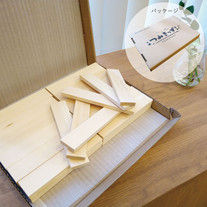 本日ご紹介するのは、無垢の木の積み木「つみきっず」です。