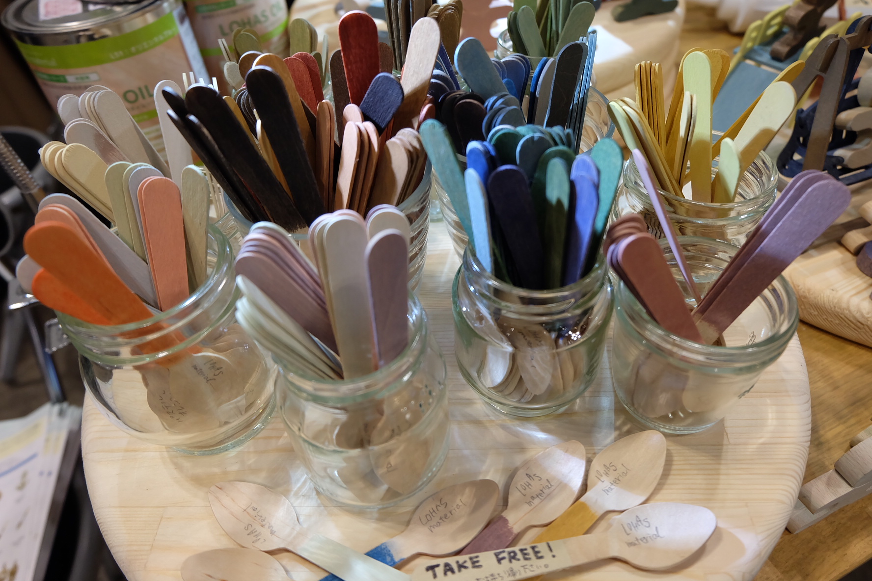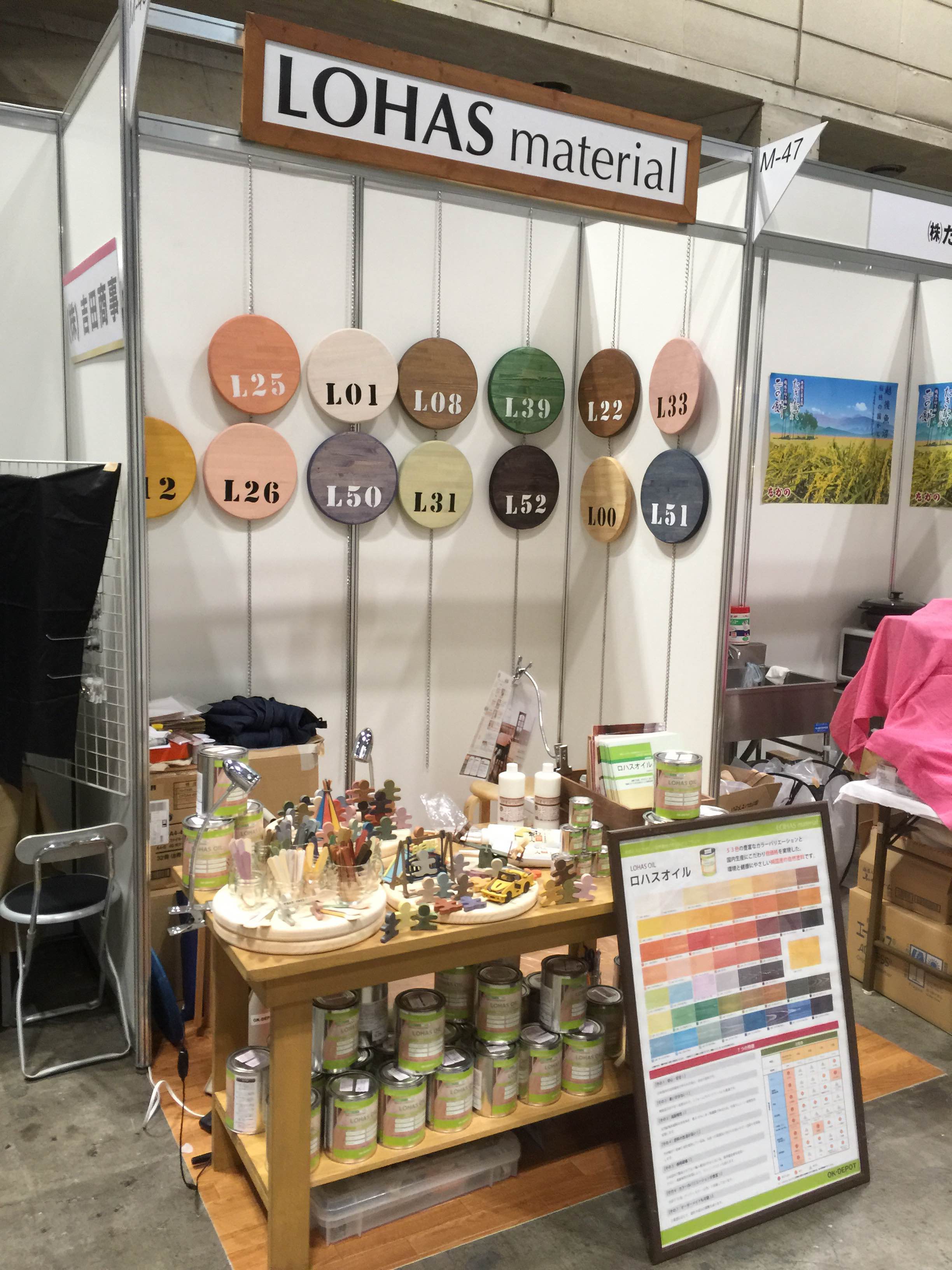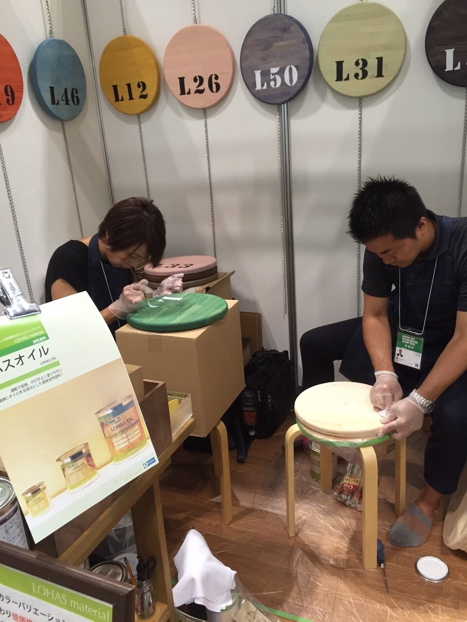 ?次にブース内でロハスオイル(自然塗料)の塗装デモレーションを行います。