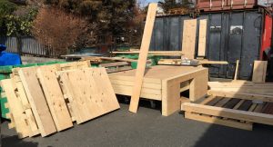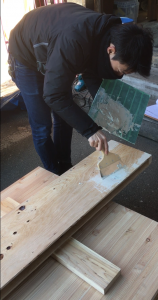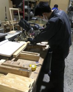 スライド丸ノコを使用したりしながら、ブースを作っていきます。