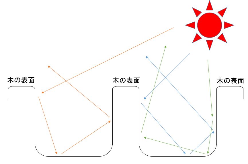 極端な例でご説明しますと、木材の表面の凸凹により