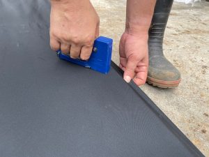 防草シートを必要サイズにカットし、タッカー取付けていくだけです!