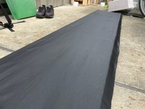 ①防草シートの幅をガーデンアプローチより少し広めにカット